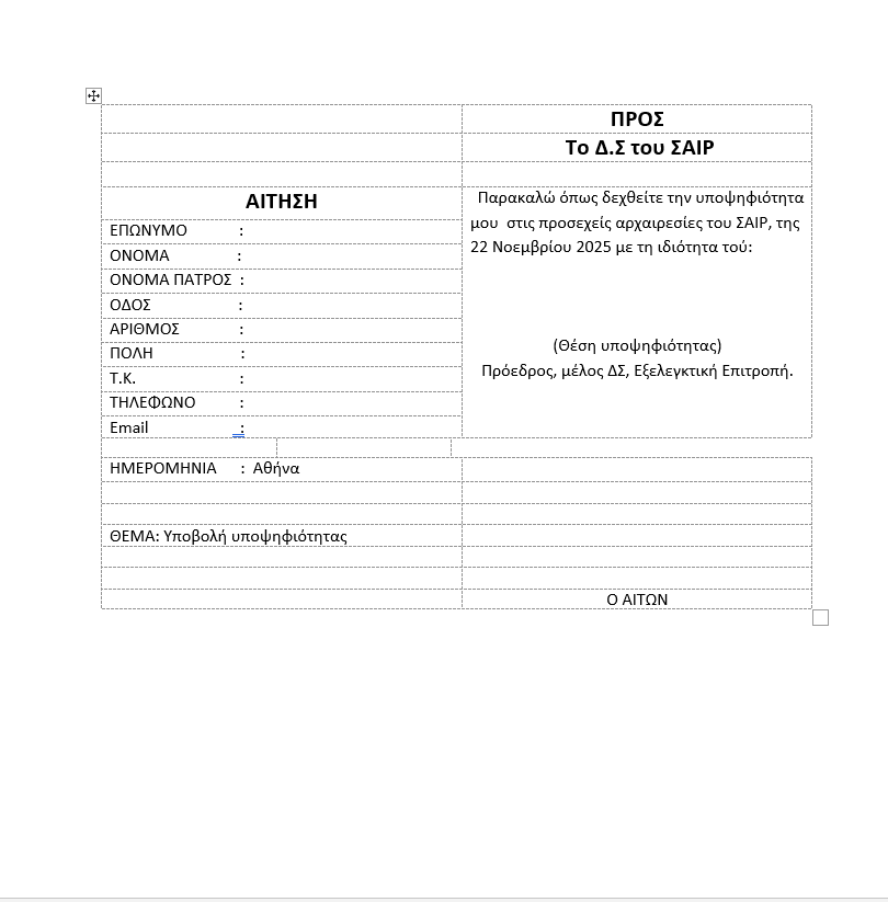 Το Σάββατο 22 Νοέμβριου 2025 και ώρα 10:00 έως 13:00, σύμφωνα με την απόφαση της Γενικής Συνέλευσης της 22ας Οκτ. ’25, θα πραγματοποιηθούν οι εκλογές για την ανάδειξη του νέου ΔΣ του Συλλόγου μας, στο Πνευματικό Κέντρο της ΕΑΑΑ (Χαλκοκονδύλη 5 Αθήνα 7ος όροφος). Συνάδελφοι η παρουσία σας είναι απαραίτητη στην εκλογική αυτή διαδικασία. Παρακαλείστε για την δήλωση υποψηφιότητας, βλέπε παρακάτω, προκειμένου ο Σύλλογος να μπορέσει να συνεχίσει την λειτουργία του.